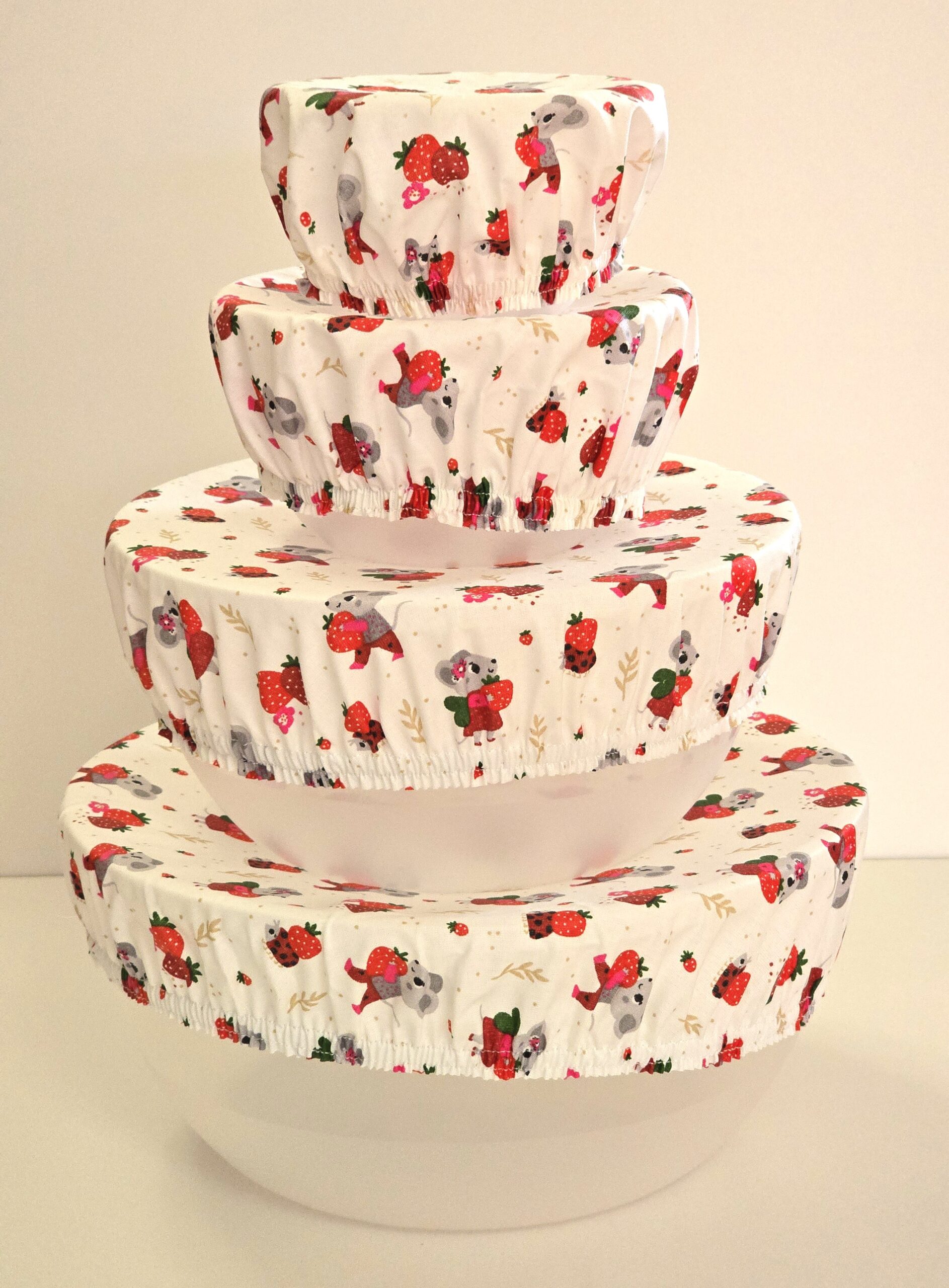 Abdeckhauben 4er Set — Maus mit Erdbeeren