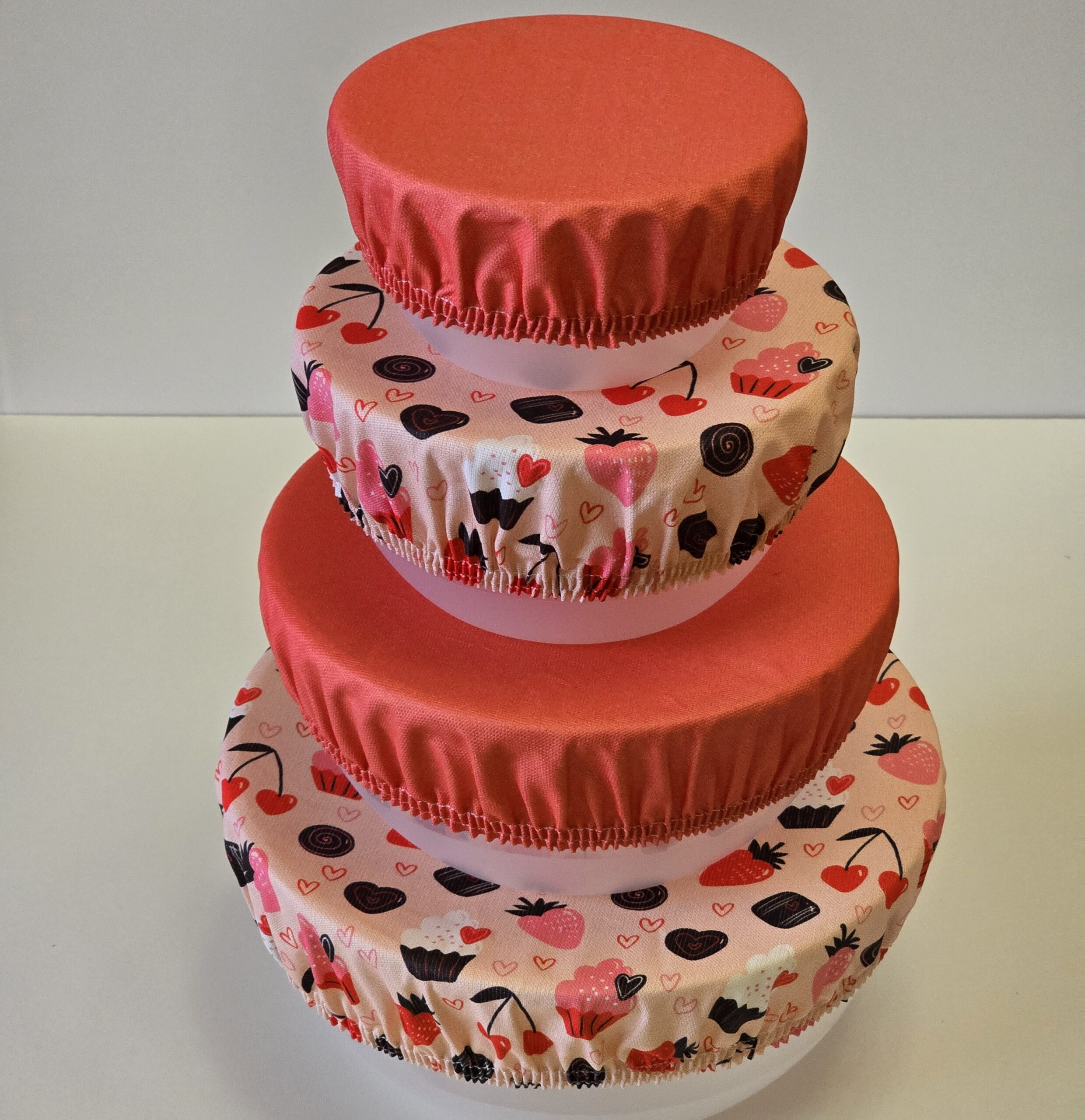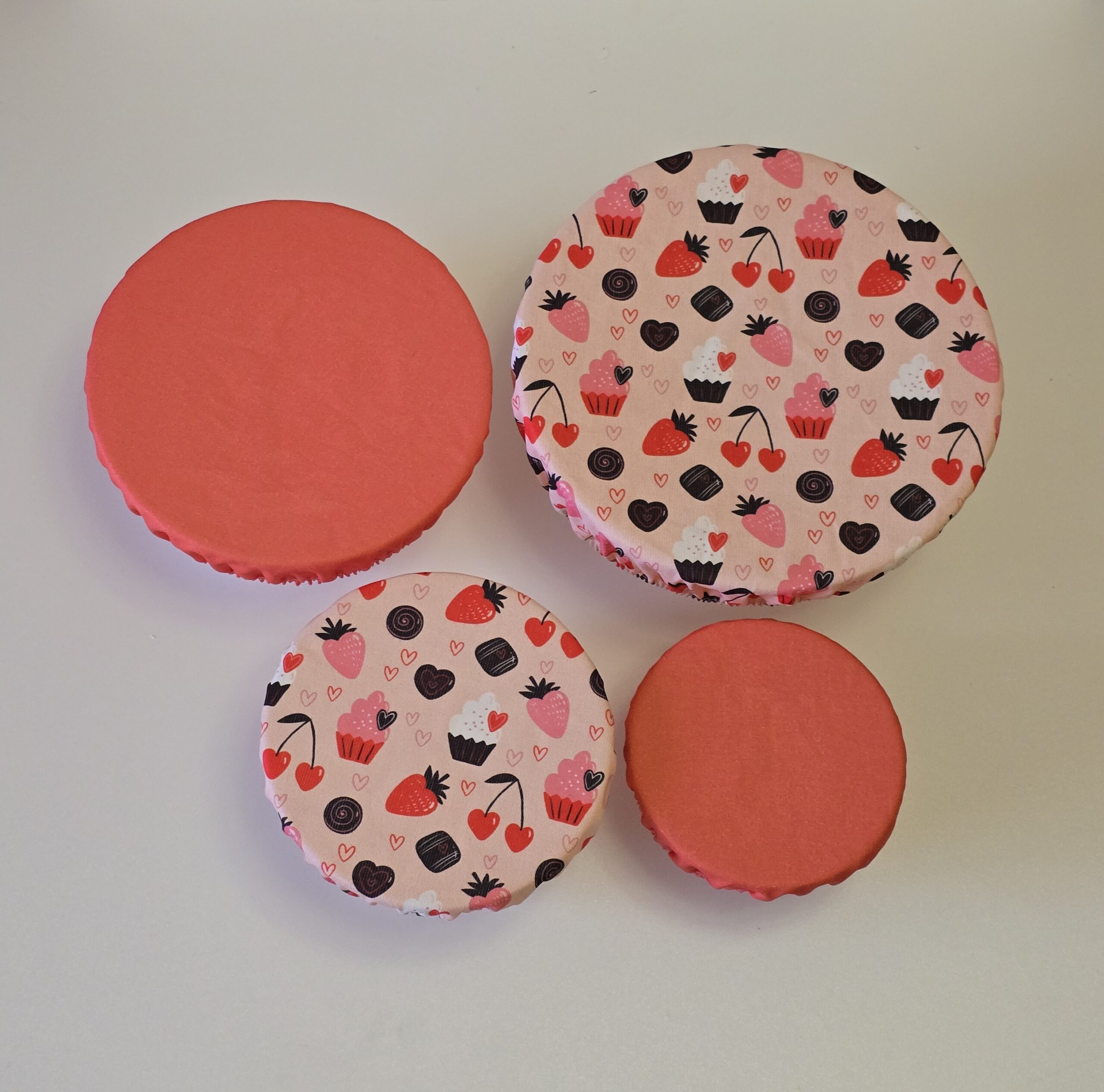Abdeckhauben 4er Set - uni koralle / Törtchen