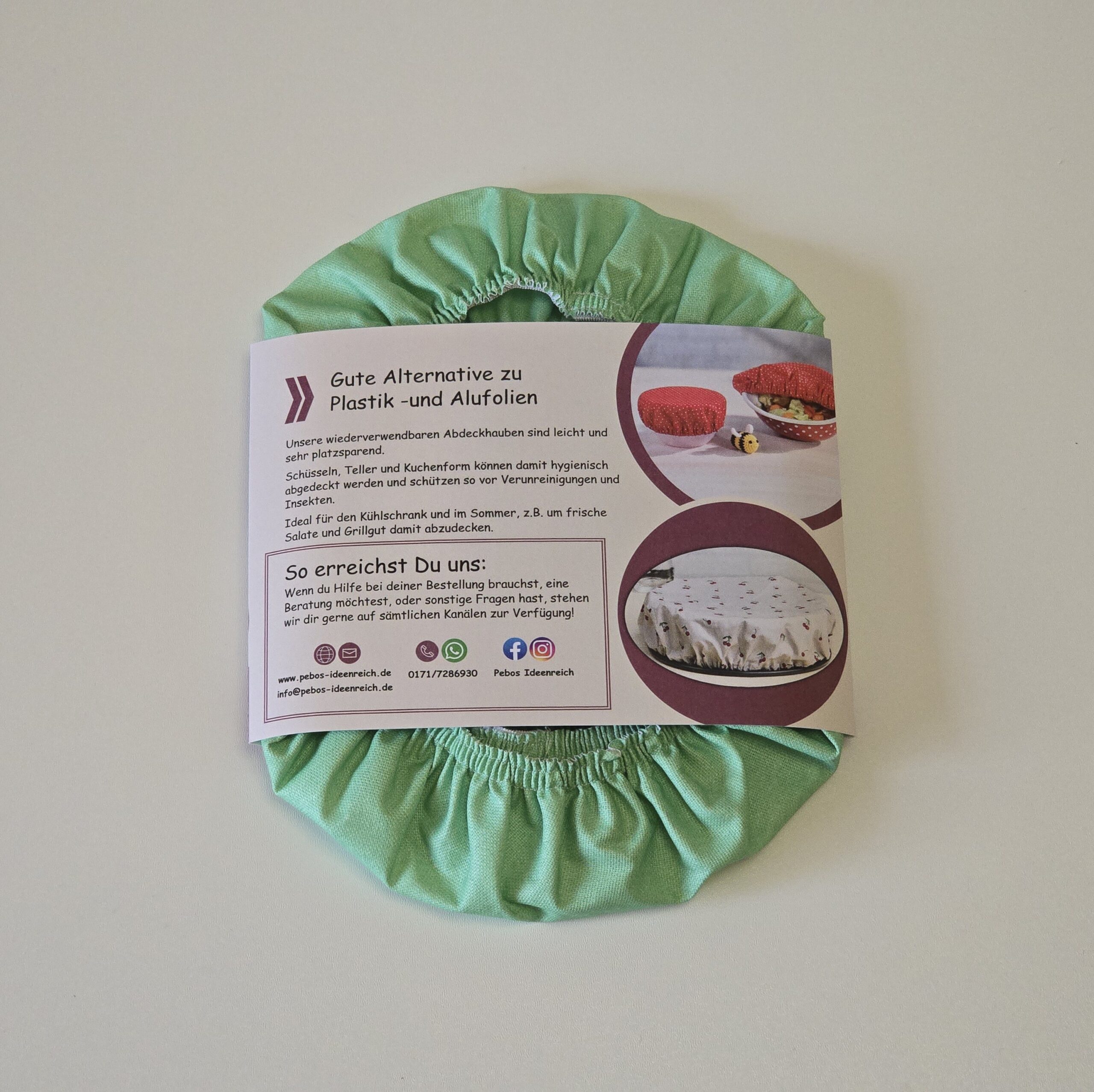 Die Abdeckhaube einfach über die Schüssel ziehen, deckt Speisen wunderbar ab.