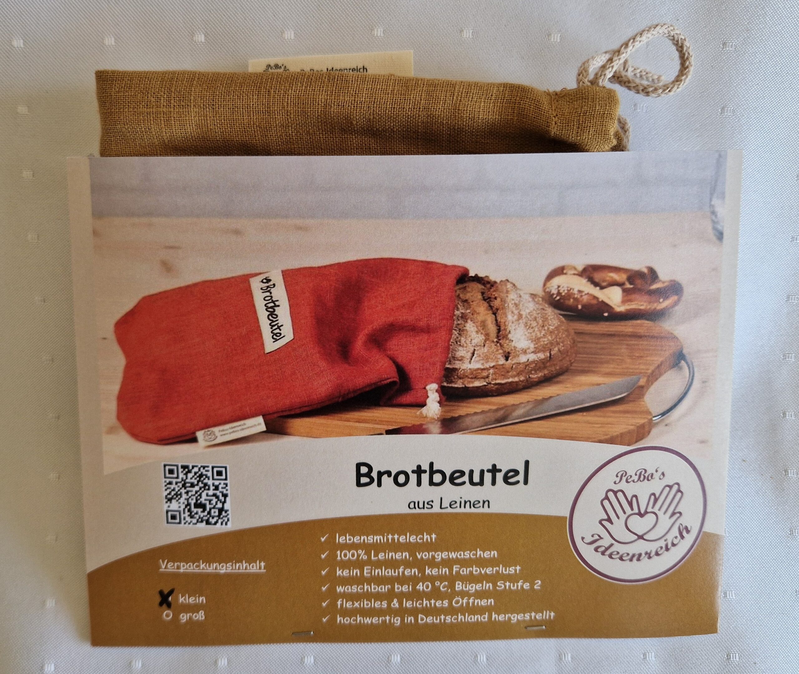 Leinen Brotbeutel „klein“ 31 x 22cm Für frisches Brot, das länger hält ! Ein Brot in einem Leinenbeutel kann in der Regel etwa 3-5 Tage frisch bleiben, abhängig von der Brotsorte, Umgebungstemperatur und Luftfeuchtigkeit. Leinenbeutel sind atmungsaktiv, so bleibt die Kruste knusprig, während sie gleichzeitig Feuchtigkeit abgeben um Schimmelbildung zu vermeiden. √ lebensmittelecht √ zur Aufbewahrung von Brot und Gebäck √ für verpackungsfreien Einkauf beim Bäcker √ 100% Leinen √ vorgewaschen √ kein Einlaufen , kein Farbverlust √ waschbar bei 40 °C √ Bügeln Stufe 2 √ leicht & platzsparend √ flexibles & leichtes Öffnen √ hochwertig in Deutschland hergestellt √ erhältlich in 2 verschiedenen Größen "Auf Anfrage auch als Brotsackerl erhältlich :-)"