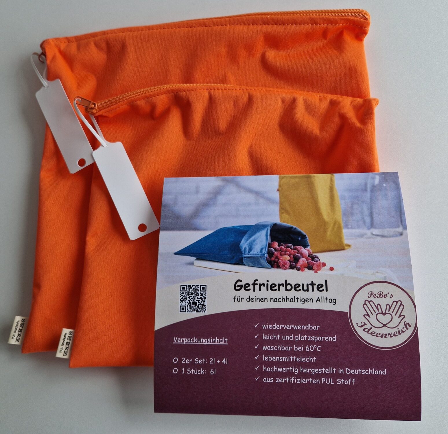 Gefrierbeutel Set Gr. S + M ‑zero waste- orange