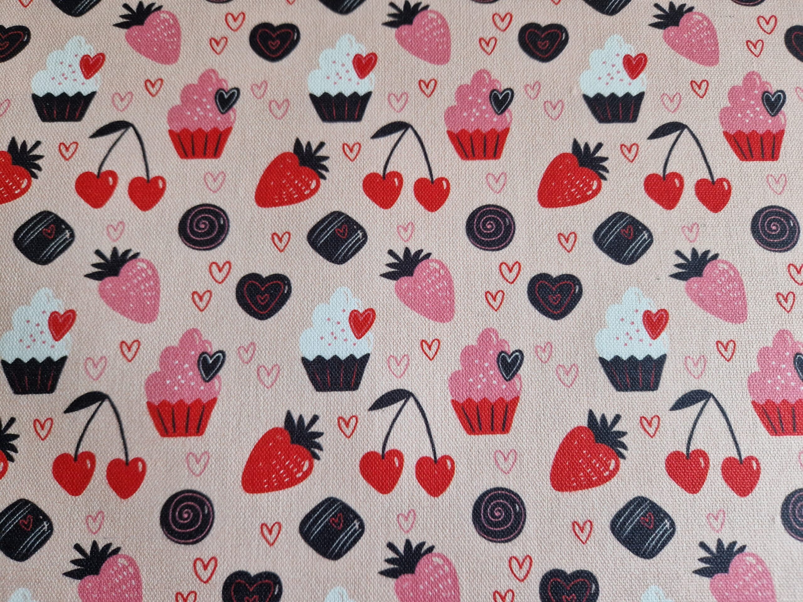 Beschichtete Baumwolle / Traumhaftes Wachstuch “Erdbeere, Kuchen”